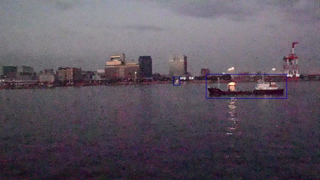 弊社オリジナル船舶AI学習データによる推論結果です。